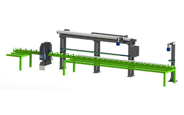 該項目主要檢測精磨銀亮鋼的長度和直徑兩個指標,直徑檢測采用我公司光電測徑儀產(chǎn)品,長度檢測部分采用機器視覺系統(tǒng)。長度檢測部分共設置2臺工業(yè)相機,其中一臺固定位置安裝,測量鋼材定位端;另一臺安裝在直線導軌滑臺的滑塊上,可根據(jù)鋼材長度調整位置測量鋼材的自由端。直線導軌滑臺采用伺服電機驅動,滑臺移動距離由測量軟件控制,移動完成后的距離直接計入長度計算系統(tǒng),2臺相機測量的數(shù)據(jù)和滑臺行走數(shù)據(jù)相結合可計算出鋼材的長度。測長系統(tǒng)采用在鋼材側上方設置的條形光源補光,圓形鋼材反射至工業(yè)相機的光線為一條比較窄的亮線,非常適合高精度測量的補光要求。