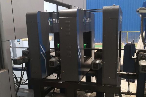 直線度測(cè)量?jī)x安裝在優(yōu)棒分廠探傷機(jī)前,檢測(cè)待探傷棒材的直線度誤差。根據(jù)現(xiàn)場(chǎng)輥道尺寸,3臺(tái)位置測(cè)量?jī)x可測(cè)量棒材每1.3m的直線度誤差。測(cè)量?jī)x采用鋼結(jié)構(gòu)支架落地安裝,不需要基礎(chǔ)土建施工。