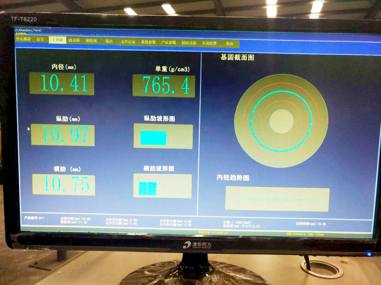 現(xiàn)場(chǎng)LED屏:內(nèi)徑值、縱肋徑長(zhǎng)或縱肋高、單重、橫肋高。