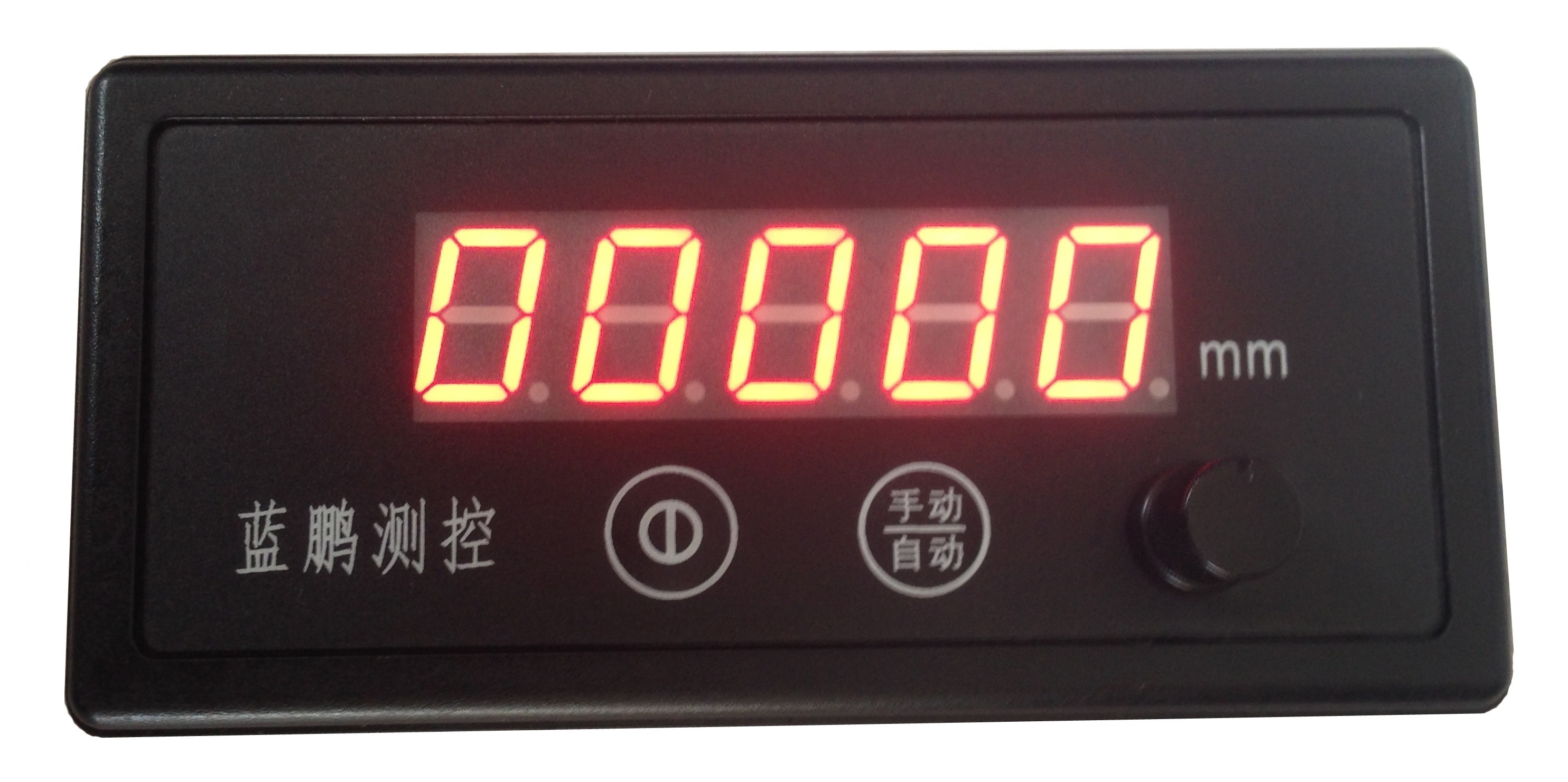 設(shè)備采用單測(cè)頭測(cè)寬原理對(duì)板材的寬度進(jìn)行測(cè)量,測(cè)頭豎直布置,用于測(cè)量板面呈水平狀態(tài)下通過的板材寬度。主要配置小型單片機(jī)系統(tǒng)、外接數(shù)碼管顯示屏,根據(jù)需要可增配嵌入式智能模塊、上位機(jī)控制系統(tǒng)等。設(shè)備下部可配置簡(jiǎn)易調(diào)高支座、手動(dòng)絲杠調(diào)高支座等輔助設(shè)備。